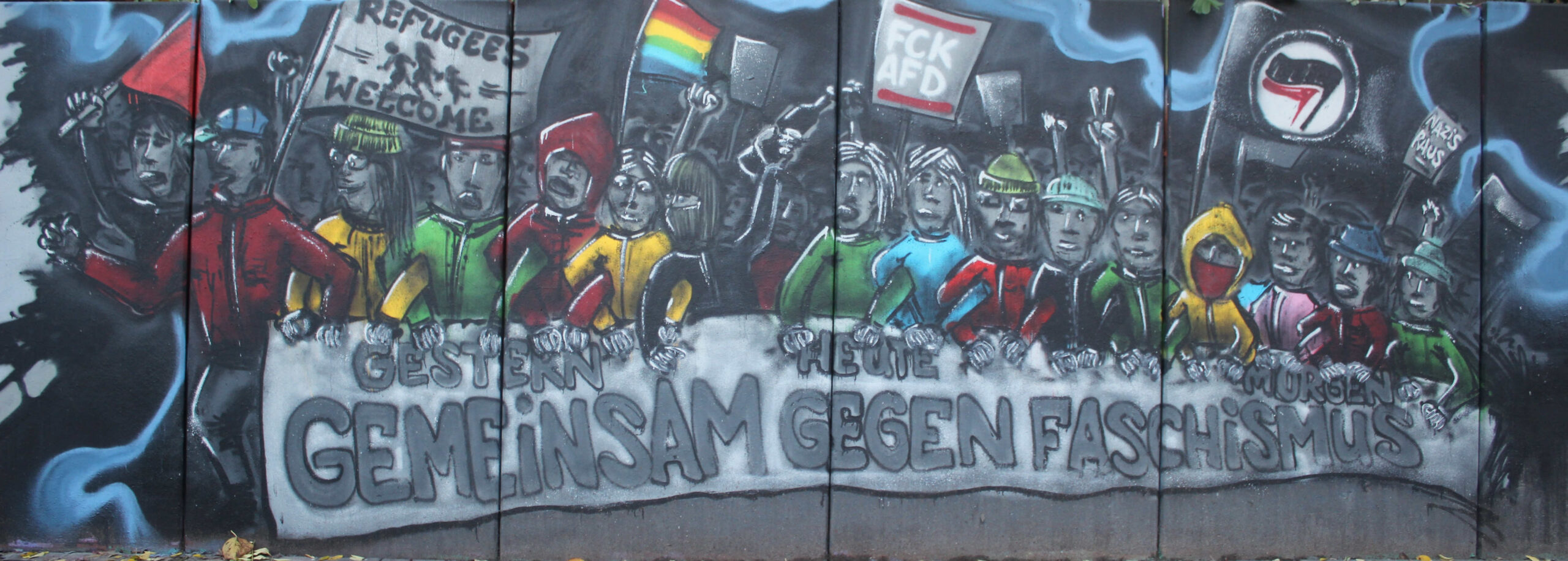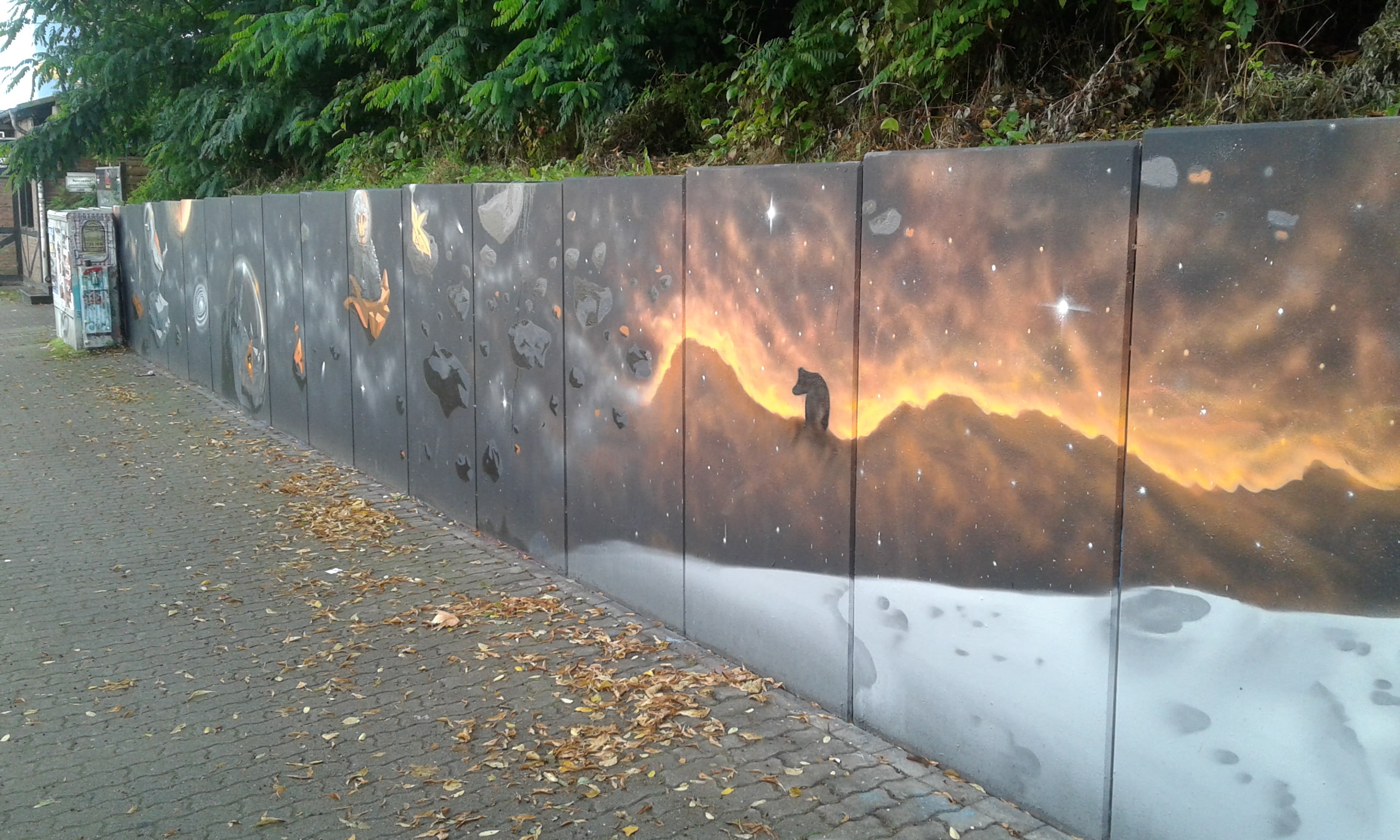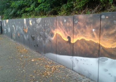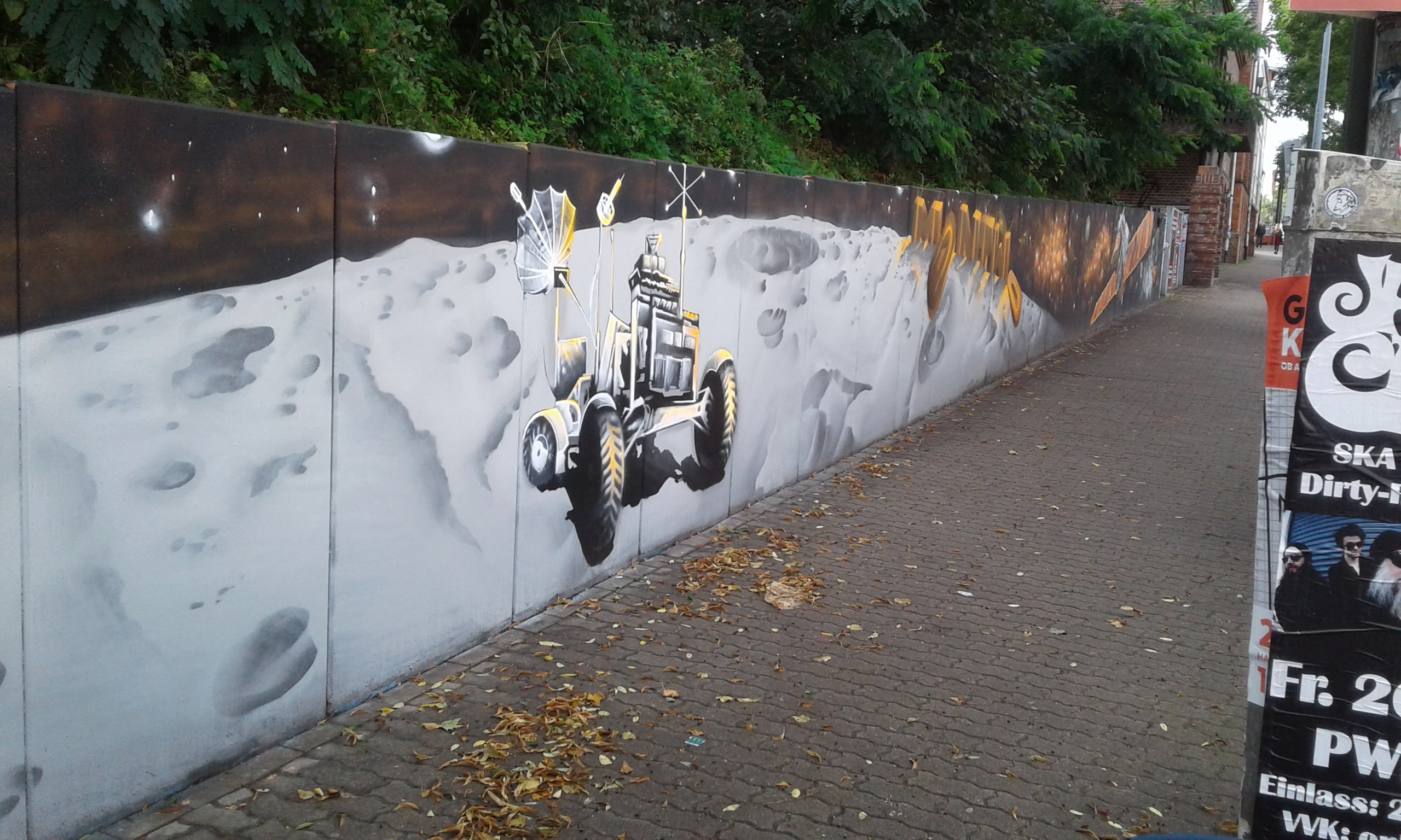 Die Hangmauer wird seit 2018 als Graffiti–Wand gestaltet, die ein künstlerischer Freiraum ist. Wir freuen uns über eine regelmäßige Gestaltung. Ein respektvoller Umgang sowie die Einhaltung folgender Regeln ist Voraussetzung für die Nutzung der Hanghauer: Achtet auf euren Müll und entsorgt ihn. Malt nur auf der freigegeben Wand. Gehweg, Laternen und Stromkästen gehören nicht dazu. Verzichtet bitte auf Bitumen und ähnliche ölhaltige Anstriche, diese beschädigen die Wand. Selbstreflexion und Fingerspitzengefühl sollten stets darüber entscheiden, ob ein Bild übermalt wird. Das neue Werk sollte ähnlich aufwendig und flächenmäßig verteilt sein, wie das alte. Also zB. keine Taggs, Throw Ups und Bombings über aufwendige Pieces. Bitte nehmt euch und euer Bild nicht zu wichtig, andere Menschen können auch sprühen. Wer gerne länger etwas von seinem Bild haben möchte, fotografiert es. Wir bitten euch großformatige thematische Bilder und Kunstwerke, welche die gesamte Wand einnehmen, besonders zu respektieren. Diese werden entsprechend gekennzeichnet. Die Hangmauer ist kein Ort für diskriminierende, menschenverachtende oder gewaltverherrlichende Botschaften sowie kein Raum für kommerzielle Werbung oder Wahlkampf. Alle weiteren Infos und Zeiträume für geplante großformatige Bilder, in denen die Mauer nicht freigegeben ist, findet Ihr hier auf der Webiste. Vielen Dank an alle Künstler*innen, die bisher dazu beitrugen, dass das Konzept so funktioniert .