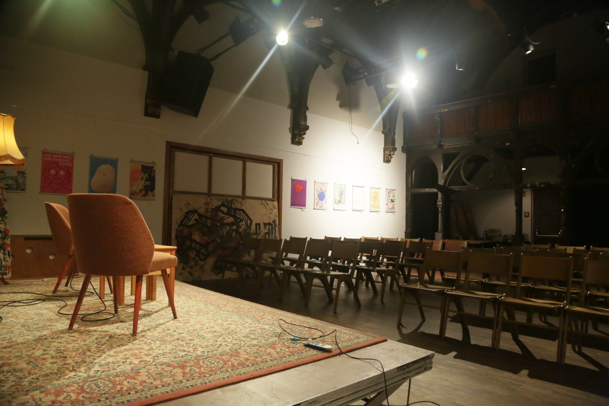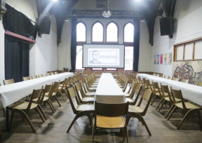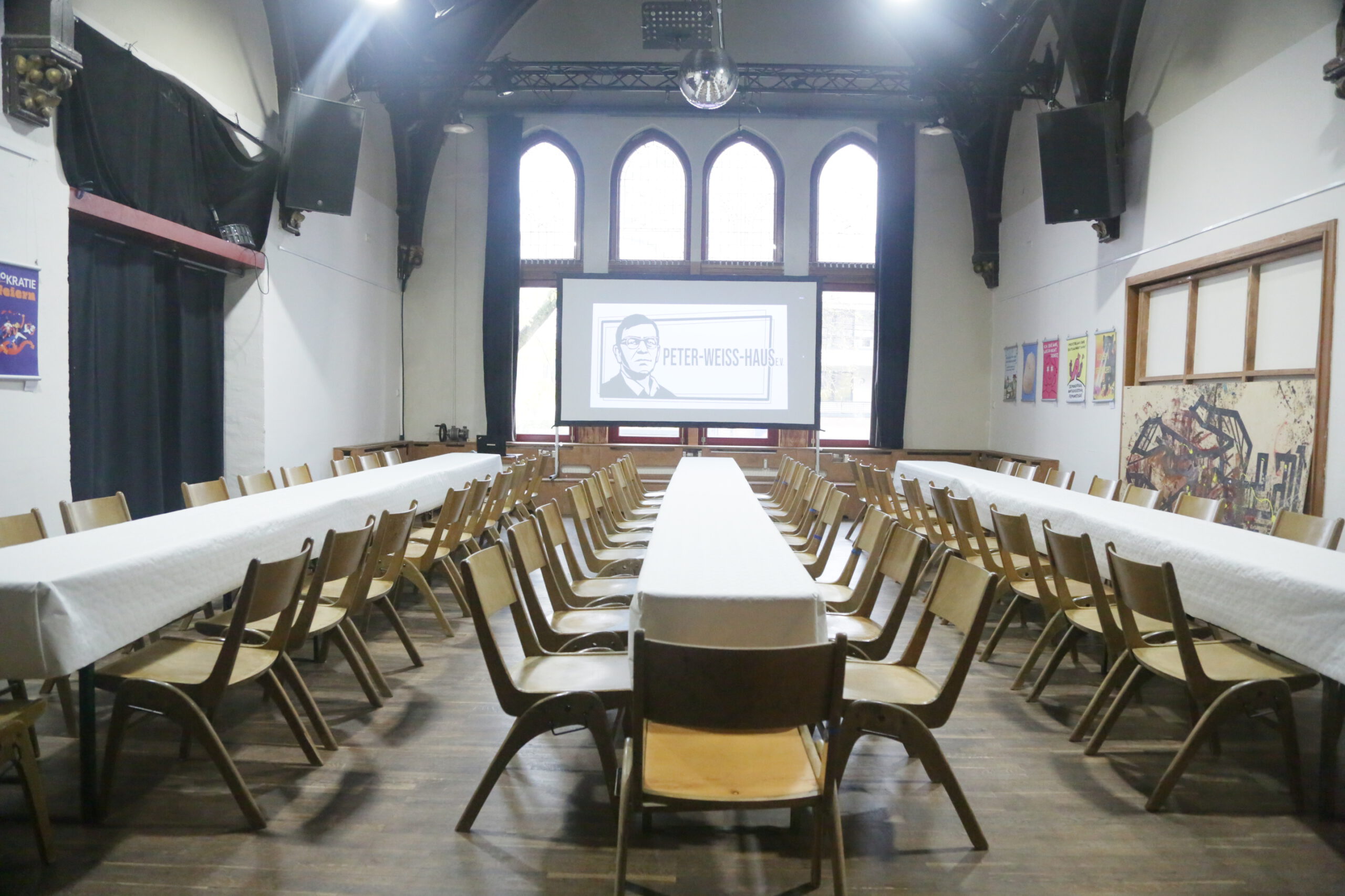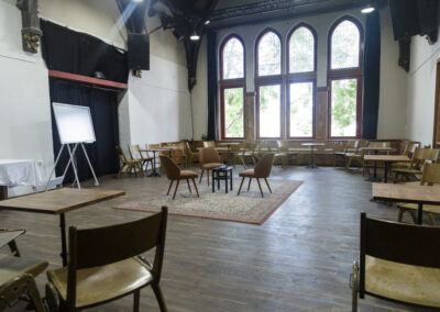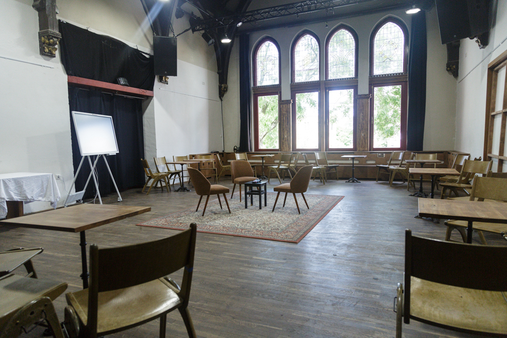 Der Möckelsaal fasst etwa 100m². Eine Bestuhlung ist hier mit 60 – 80 Sitzplätzen möglich, stehend kann der Saal bis zu 120 Personen fassen.